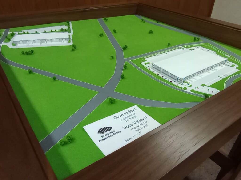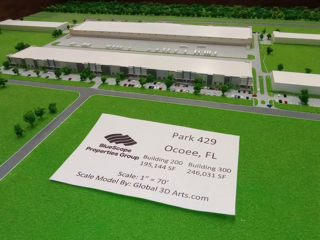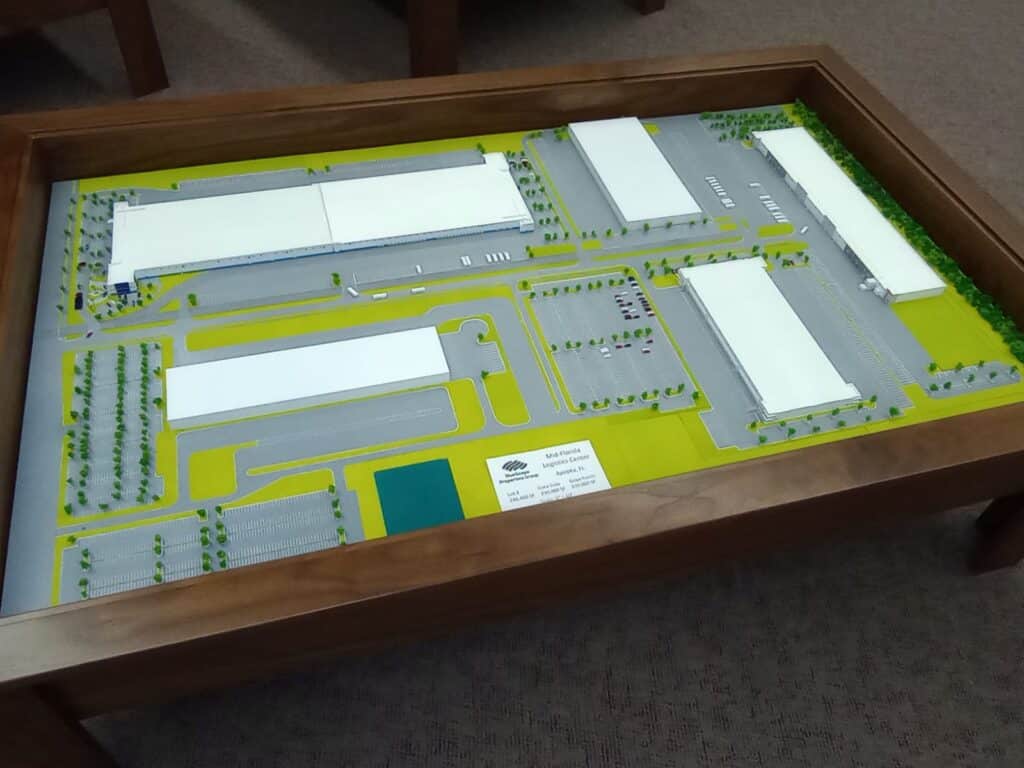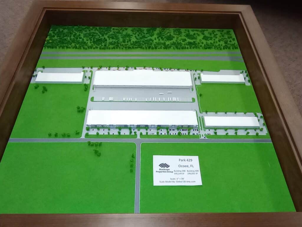 Global 3D Arts recently completed 5 custom built scale models and 5 custom Walnut display tables for the offices of Bluescope Properties Group of Kansas City. These models are of different scales and scale models of existing Bluescope properties located in Texas and Florida.