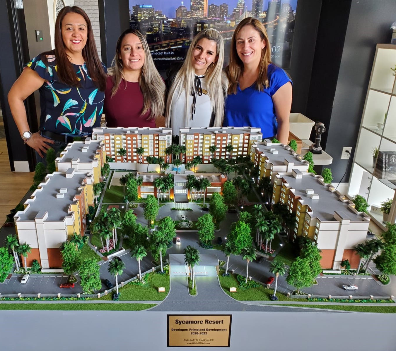 The Sycamore Resort Scale Model was a very special project for Global 3D Arts. Owner Dave Van Doren was able to deliver the models to Primeland Development’s sales team in their Kissimmee Sales Office and also see the project site where the Sycamore Resort is being built! If you happen to be in the market for a luxury condo near Disney World, these lovely ladies will take great care of you!
